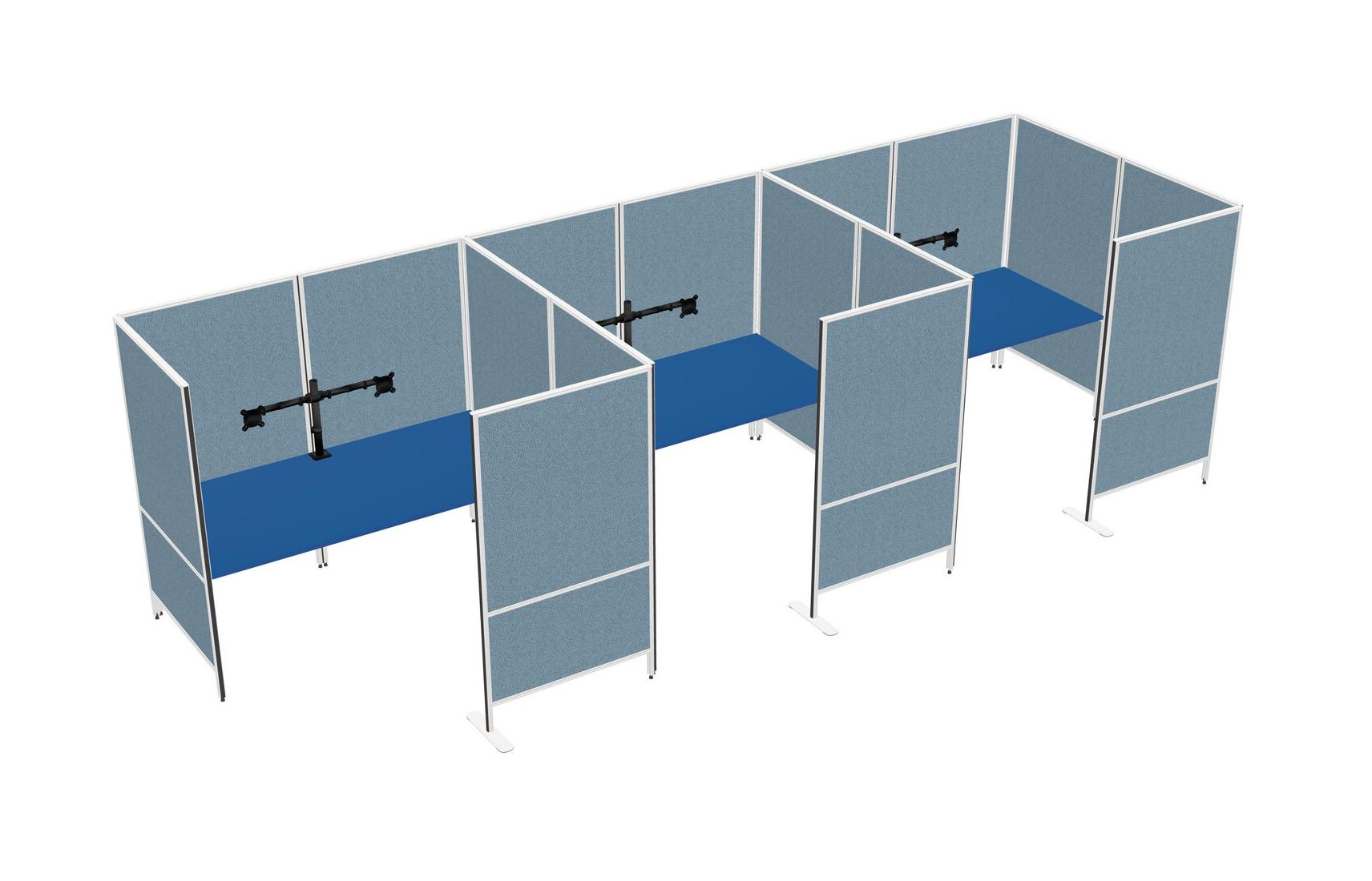 Prism Blue Flexible Panel System With Privacy For 3 + Monitor Arm (double Arms)