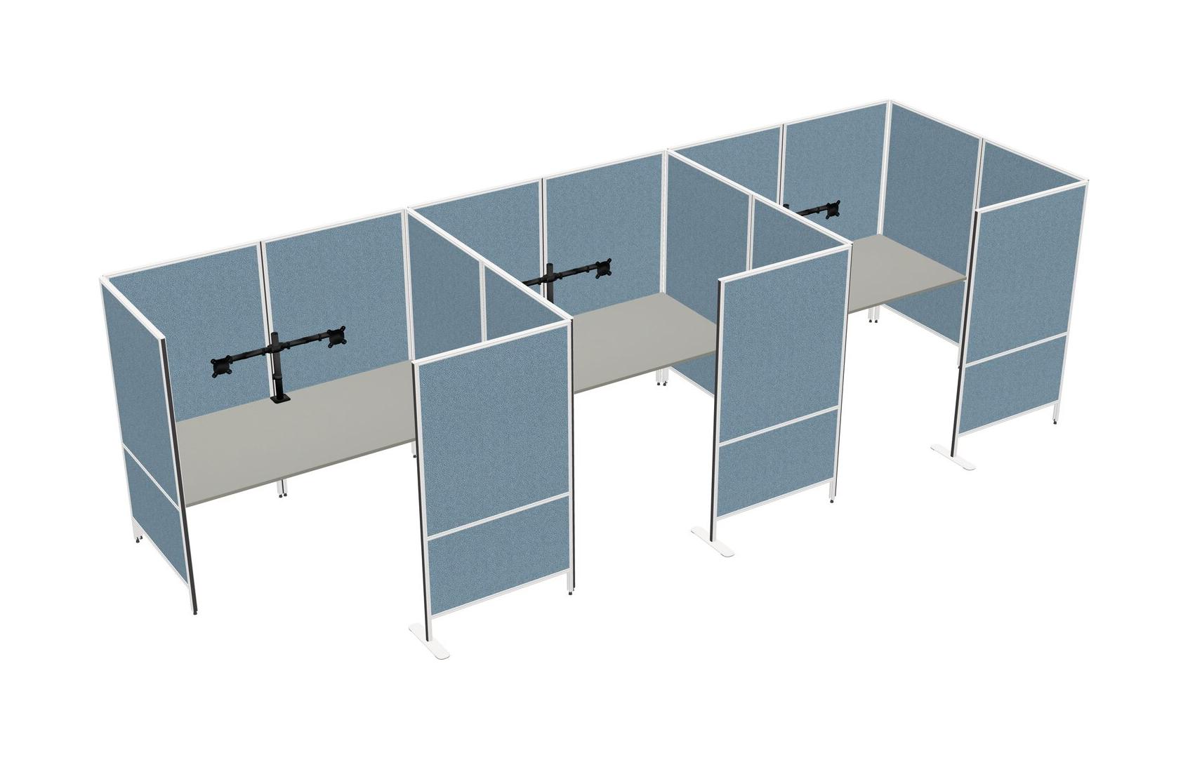 Grey Shadows Flexible Panel System With Privacy For 3 + Monitor Arm (double Arms)