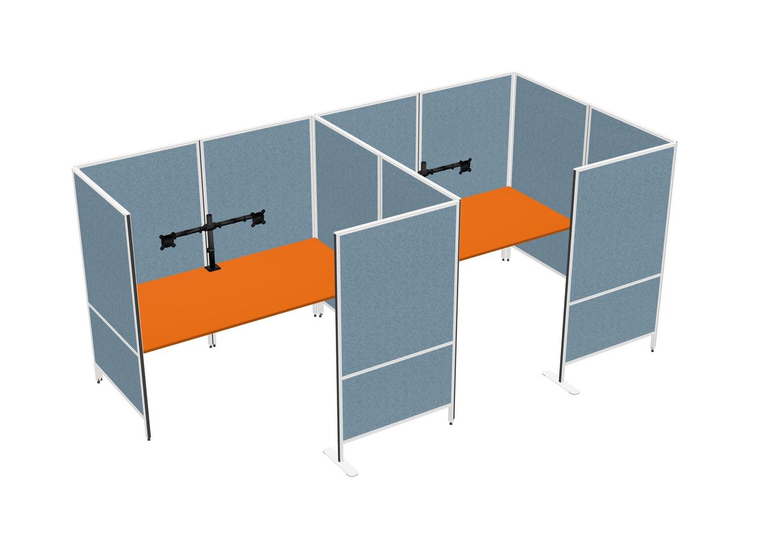Orange Flexible Panel System With Privacy For 2 + Monitor Arm (double Arms)