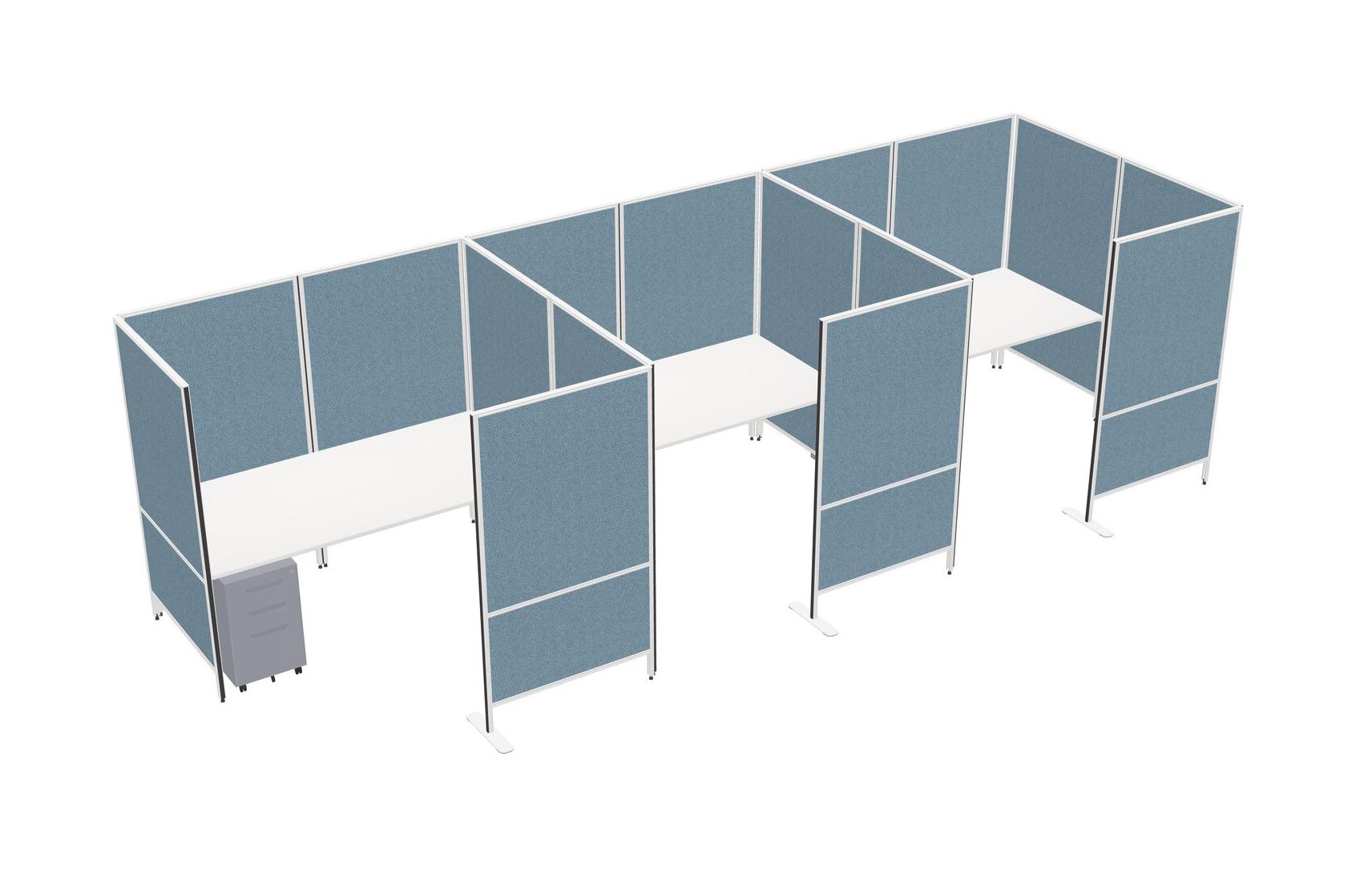 White Flexible Panel System With Privacy For 3 + Metal Mobile Drawers