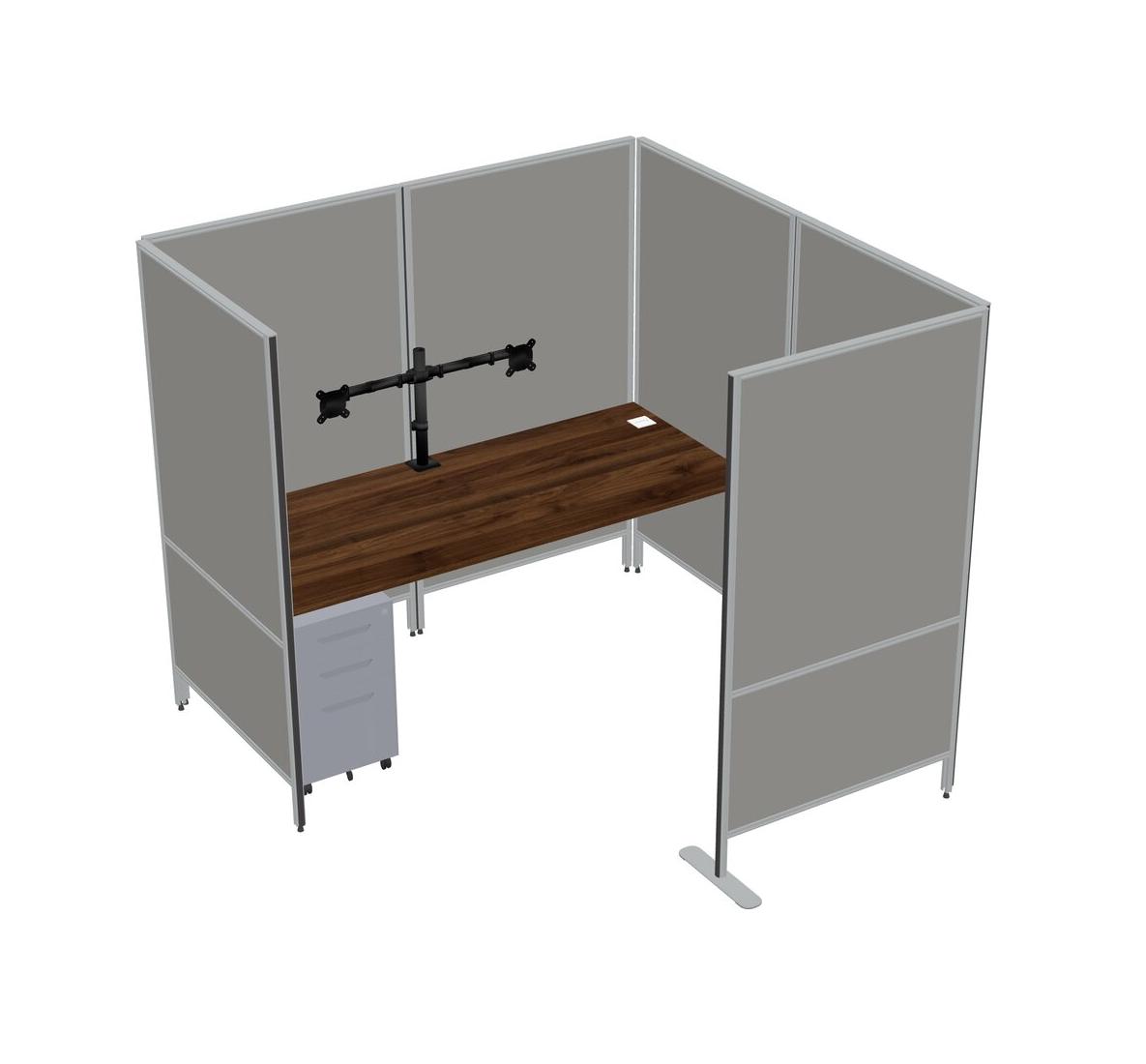 Columbia Walnut Flexible Panel System With Privacy For 1 + Metal Mobile Drawers + Monitor Arm (double Arms)