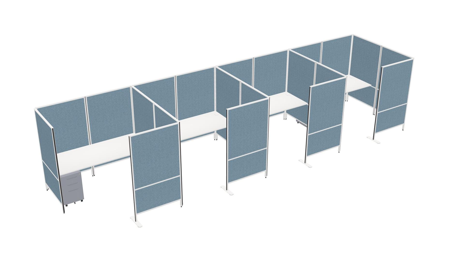 White Flexible Panel System With Privacy For 4 + Metal Mobile Drawers