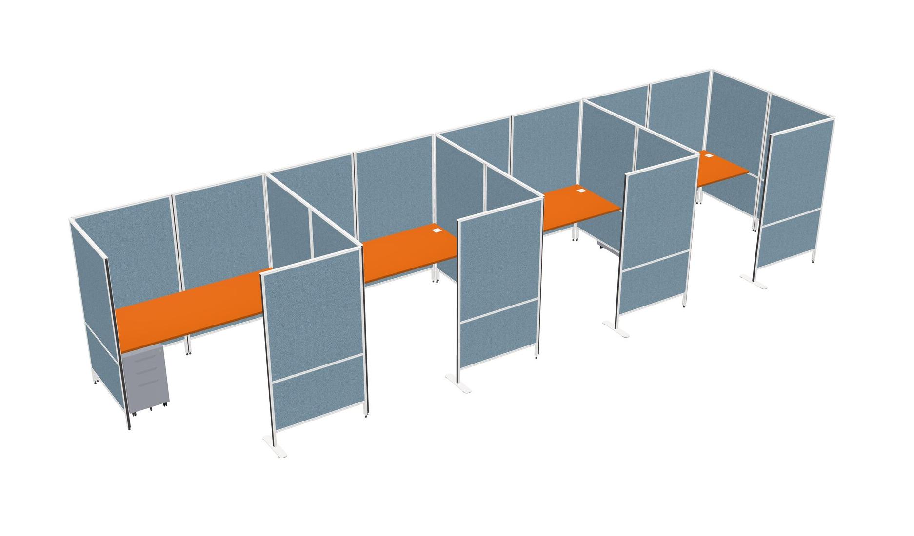 Orange Flexible Panel System With Privacy For 4 + Metal Mobile Drawers