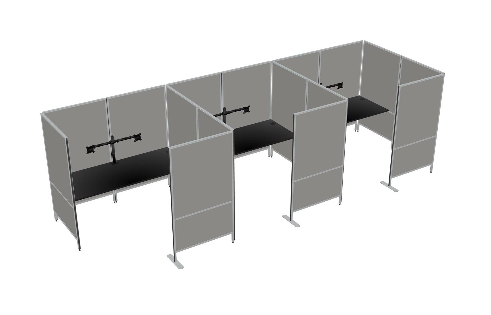 Black Flexible Panel System With Privacy For 3 + Monitor Arm (double Arms)