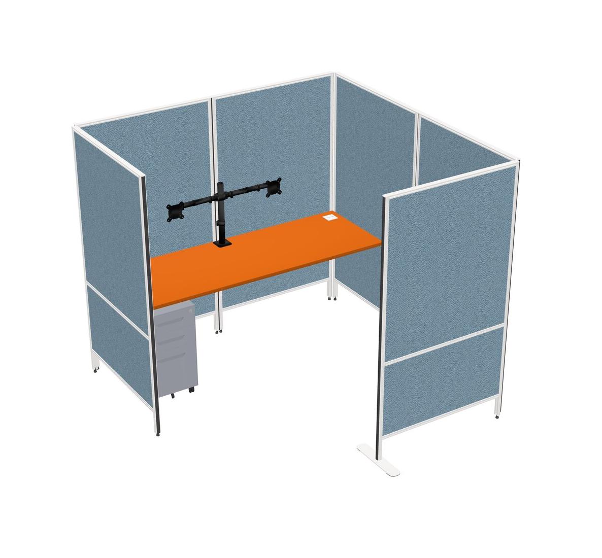 Orange Flexible Panel System With Privacy For 1 + Metal Mobile Drawers + Monitor Arm (double Arms)