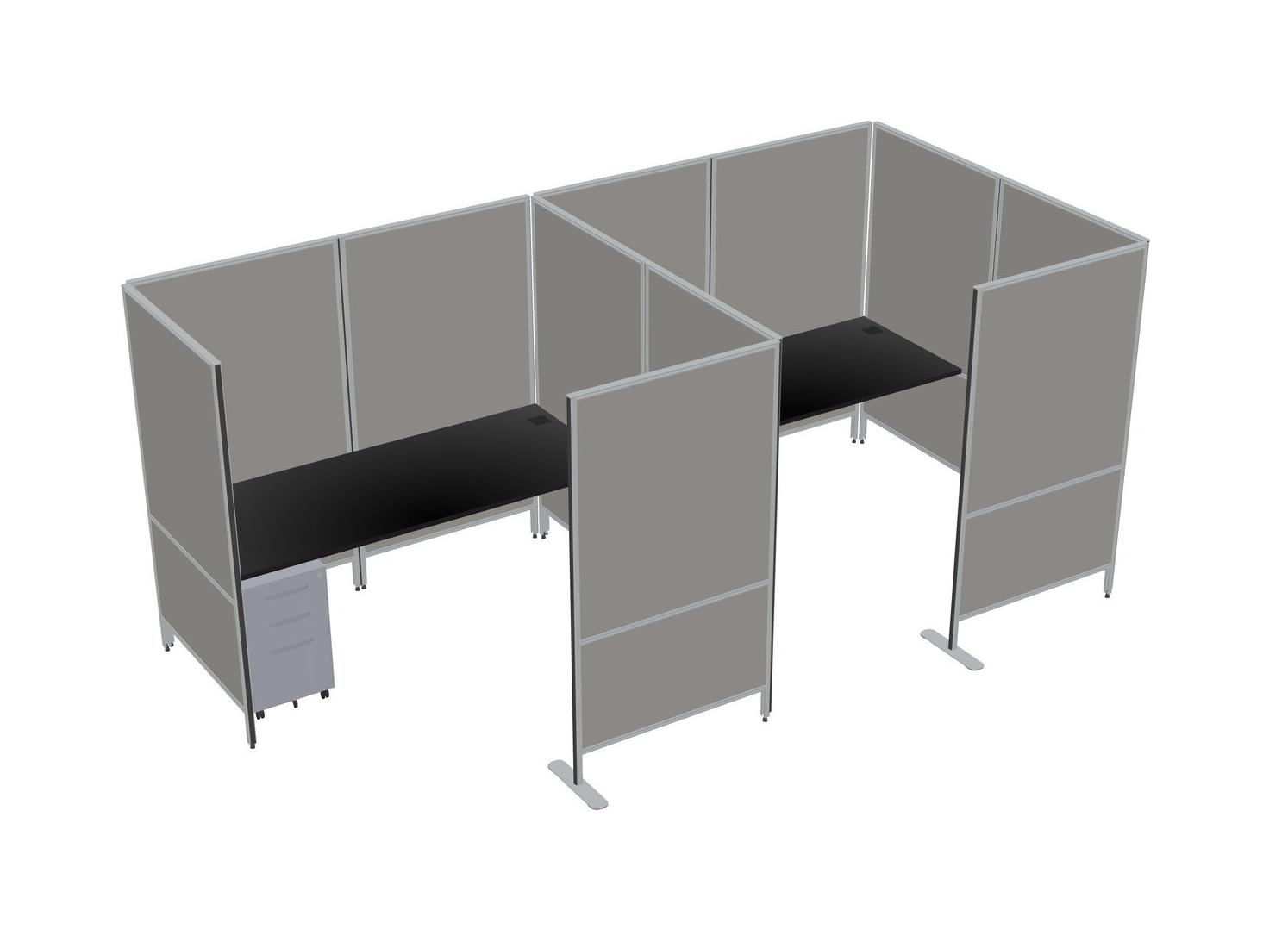Black Flexible Panel System With Privacy For 2 + Metal Mobile Drawers