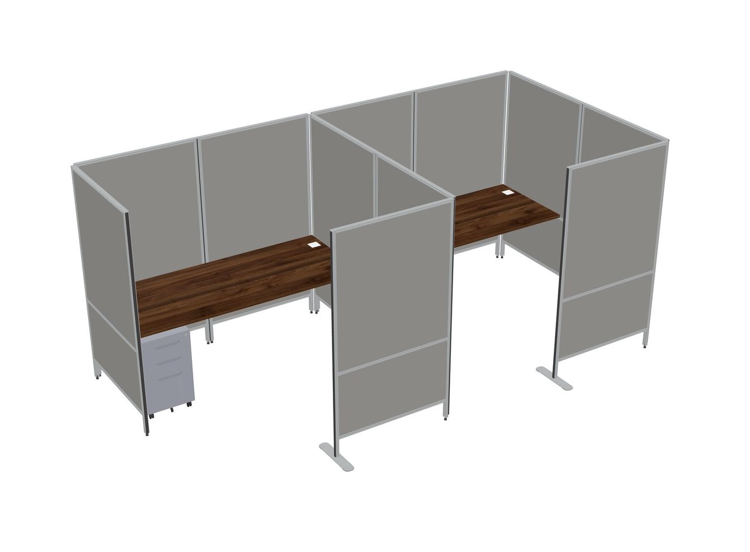Columbia Walnut Flexible Panel System With Privacy For 2 + Metal Mobile Drawers