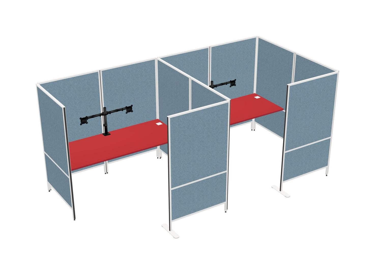 Prism Red Flexible Panel System With Privacy For 2 + Monitor Arm (double Arms)