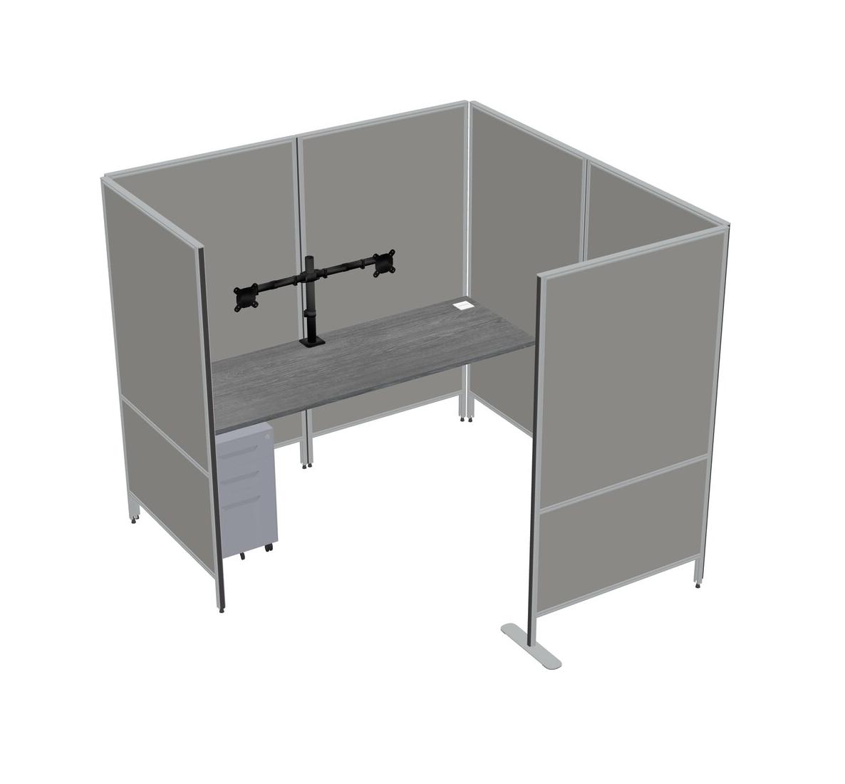 Grey Flexible Panel System With Privacy For 1 + Metal Mobile Drawers + Monitor Arm (double Arms)