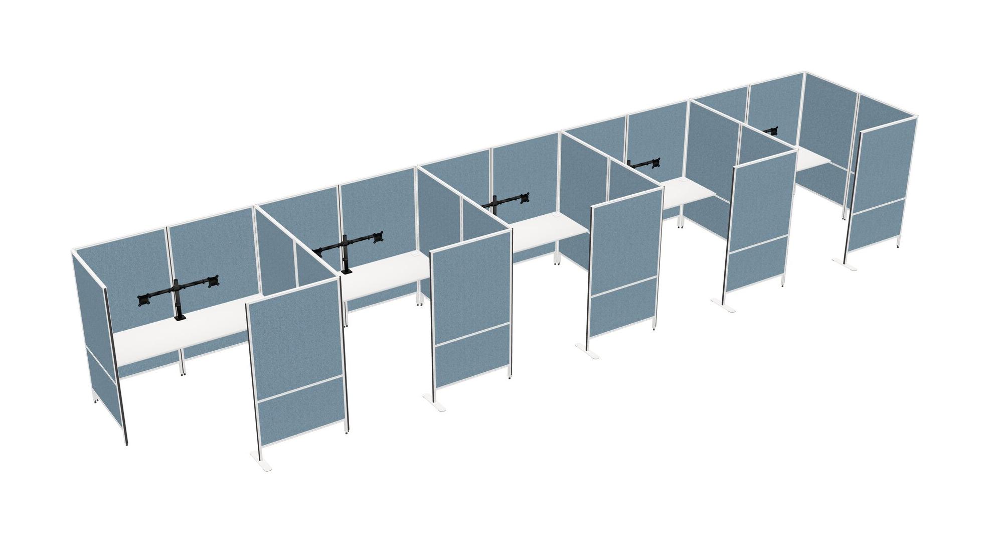 White Flexible Panel System With Privacy For 5 + Monitor Arm (double Arms)