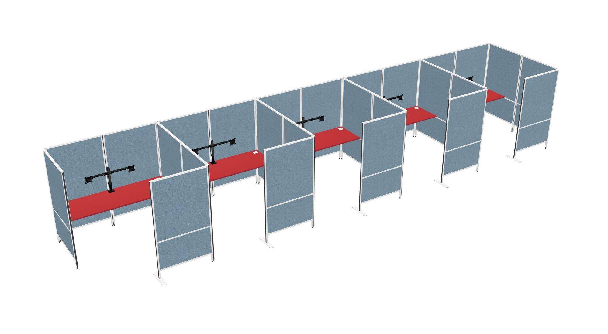 Prism Red Flexible Panel System With Privacy For 5 + Monitor Arm (double Arms)