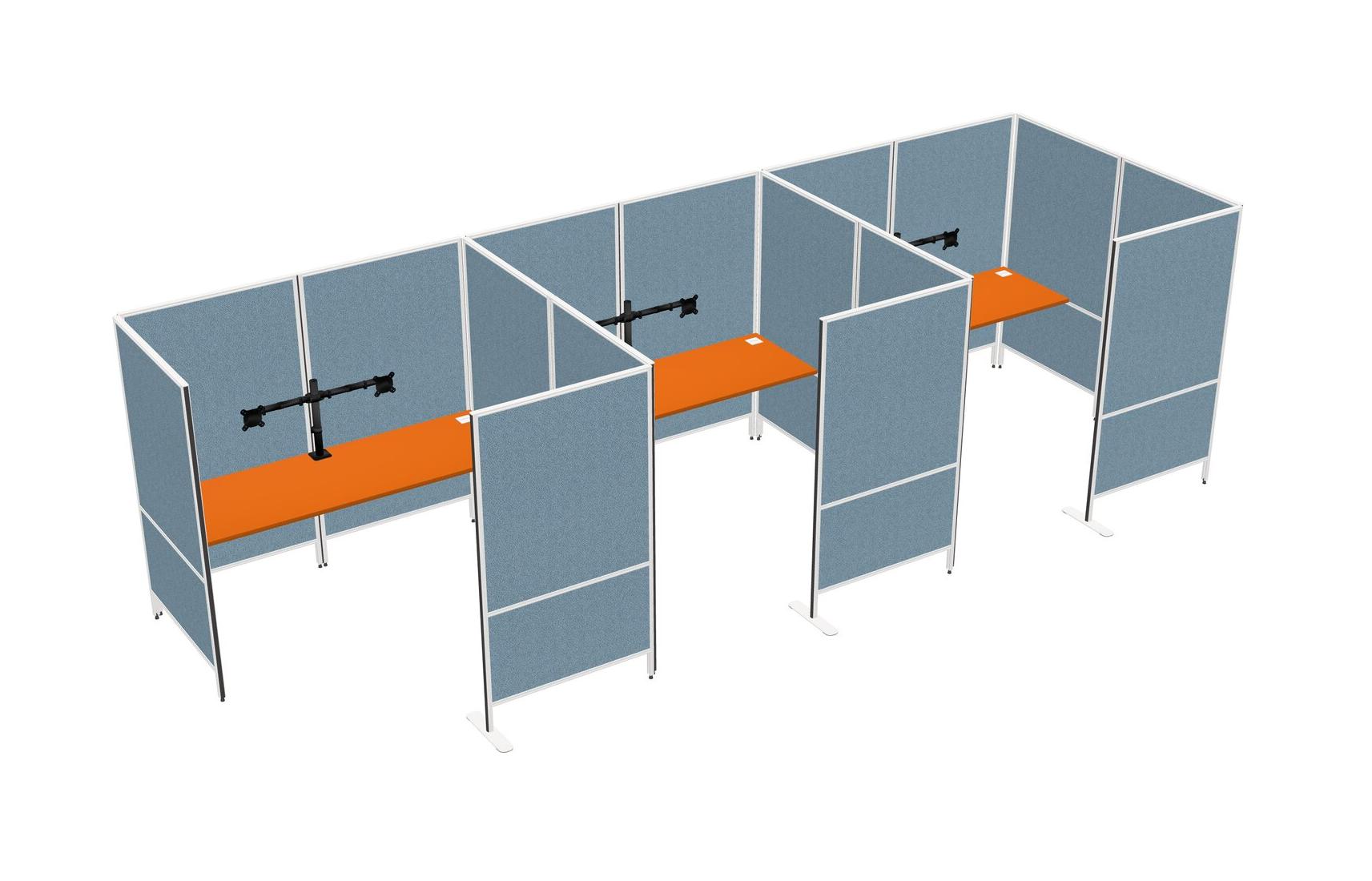 Orange Flexible Panel System With Privacy For 3 + Monitor Arm (double Arms)