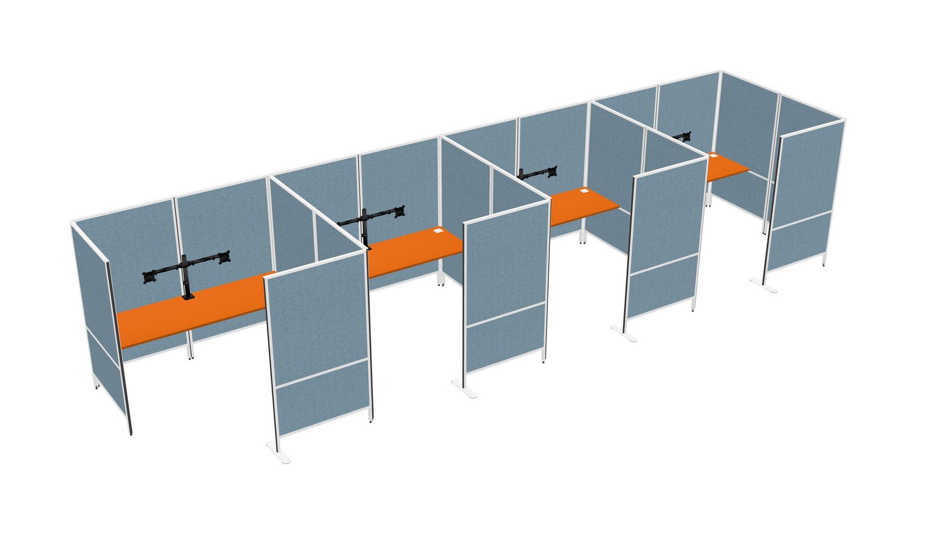 Orange Flexible Panel System With Privacy For 4 + Monitor Arm (double Arms)
