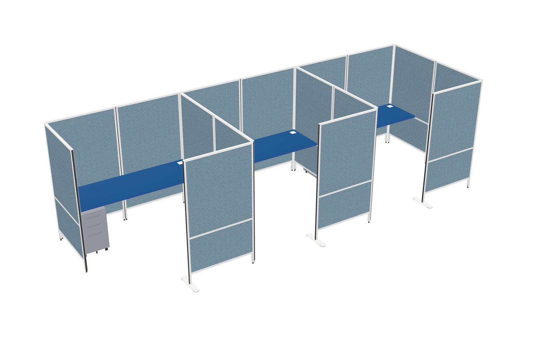 Prism Blue Flexible Panel System With Privacy For 3 + Metal Mobile Drawers