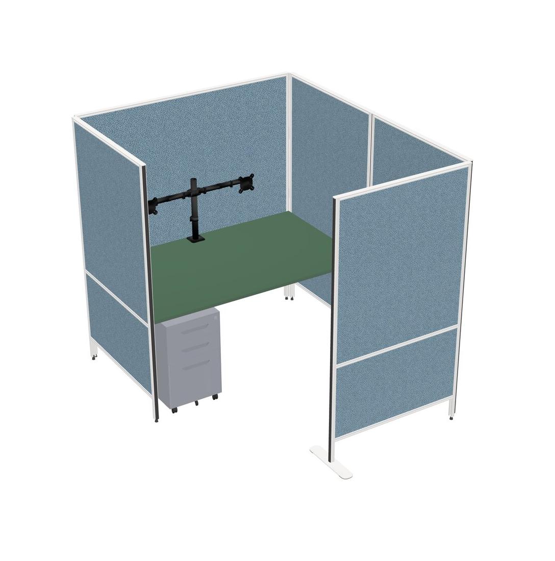 Green Flexible Panel System With Privacy For 1 + Metal Mobile Drawers + Monitor Arm (double Arms)