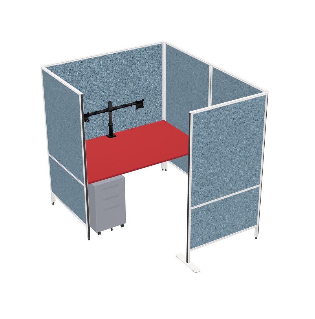 Prism Red Flexible Panel System With Privacy For 1 + Metal Mobile Drawers + Monitor Arm (double Arms)