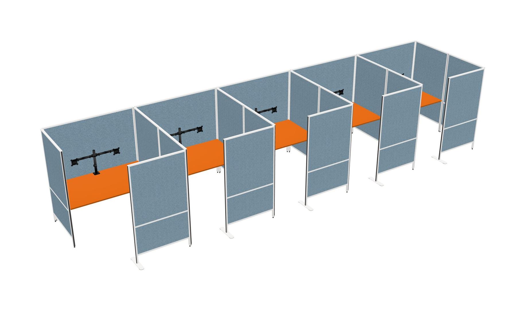 Orange Flexible Panel System With Privacy For 5 + Monitor Arm (double Arms)