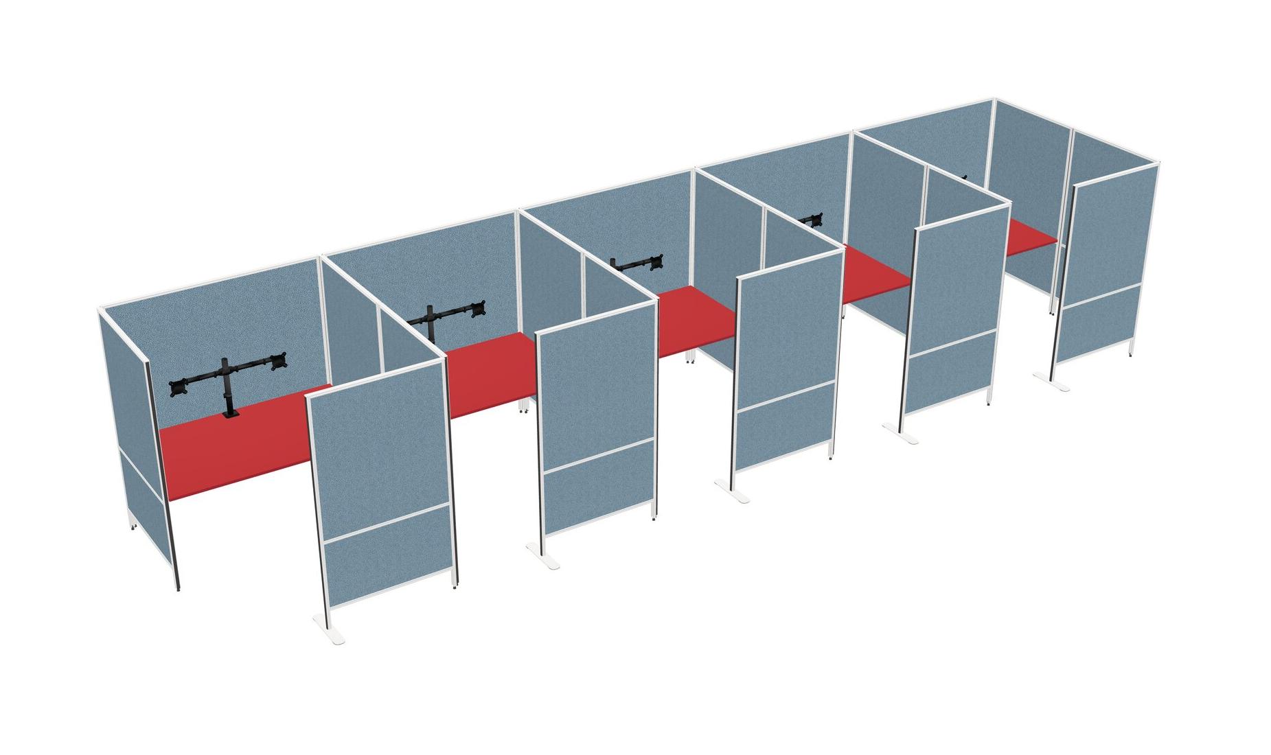 Prism Red Flexible Panel System With Privacy For 5 + Monitor Arm (double Arms)