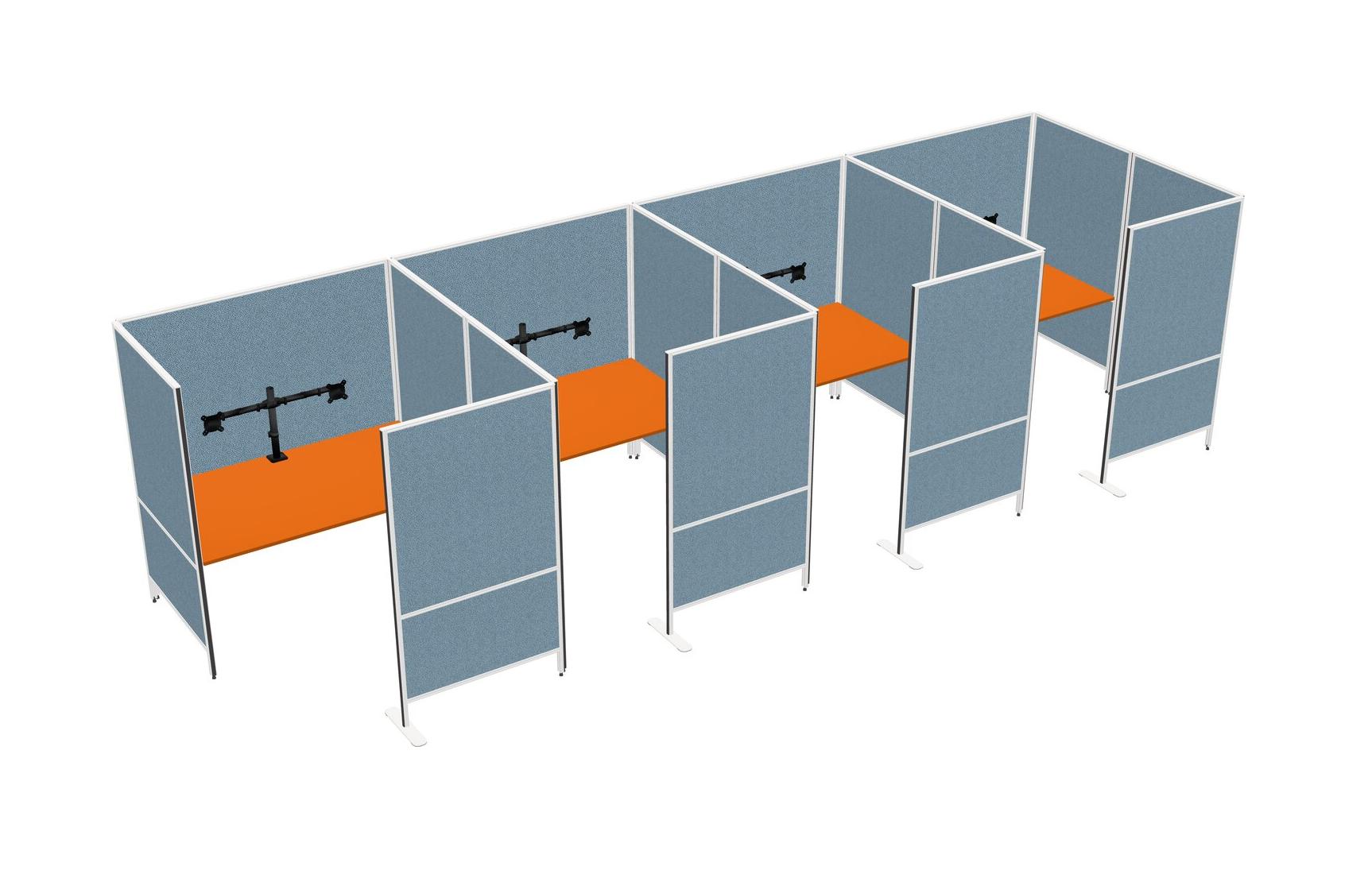 Orange Flexible Panel System With Privacy For 4 + Monitor Arm (double Arms)