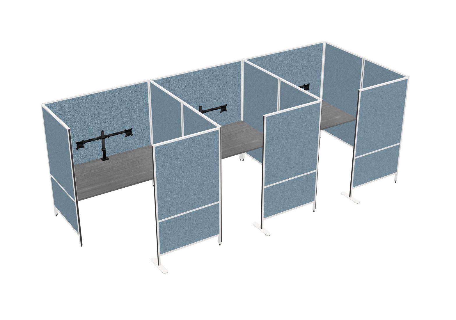 Grey Flexible Panel System With Privacy For 3 + Monitor Arm (double Arms)
