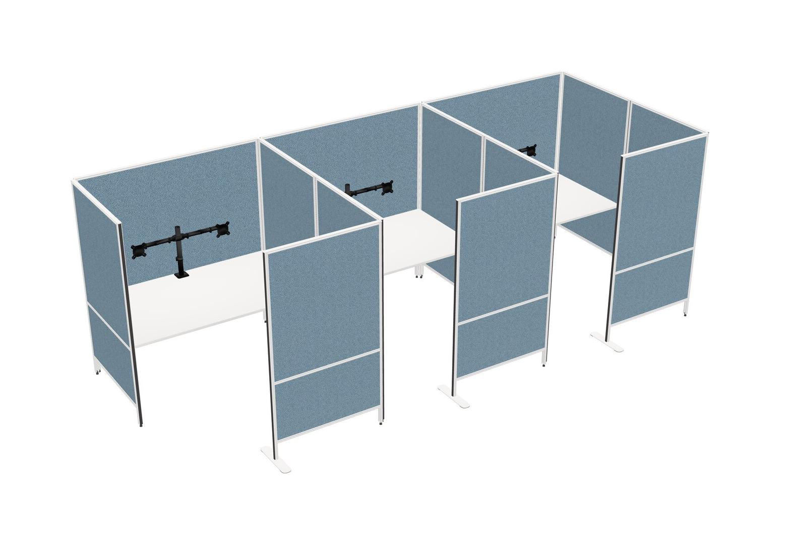 White Flexible Panel System With Privacy For 3 + Monitor Arm (double Arms)