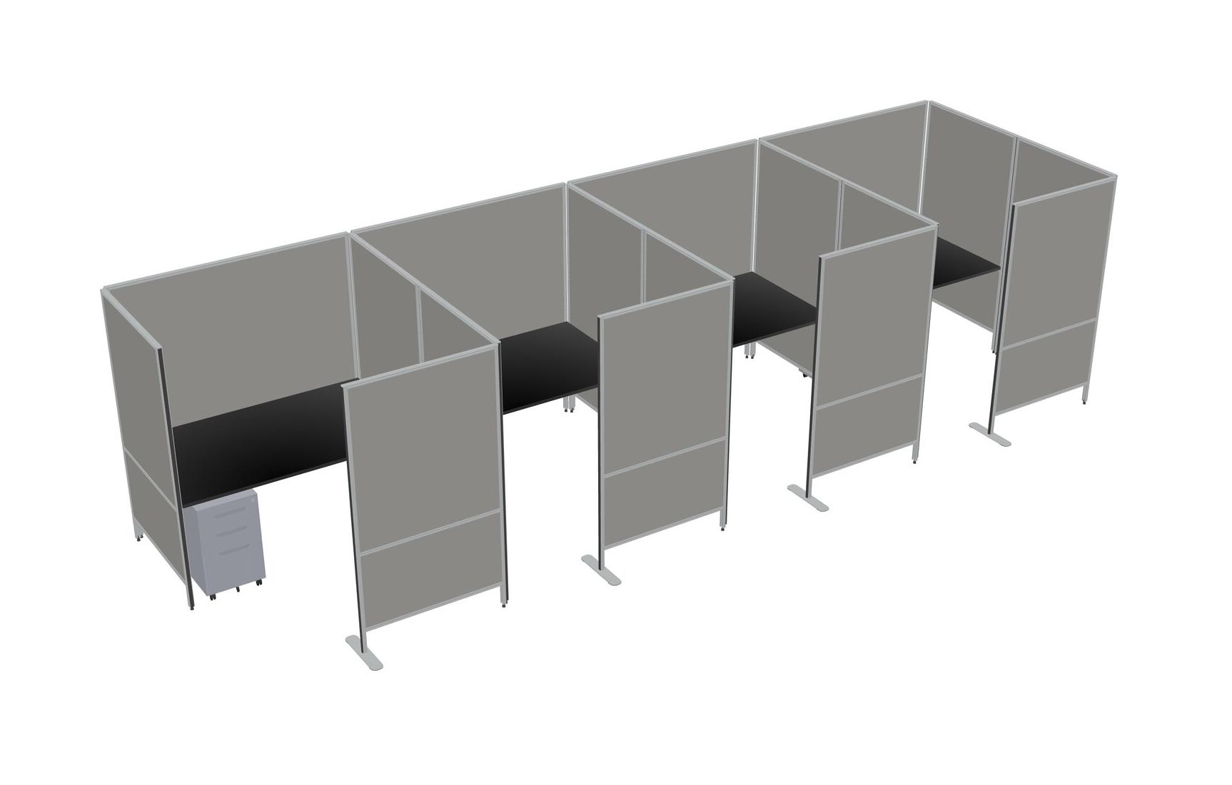 Black Flexible Panel System With Privacy For 4 + Metal Mobile Drawers
