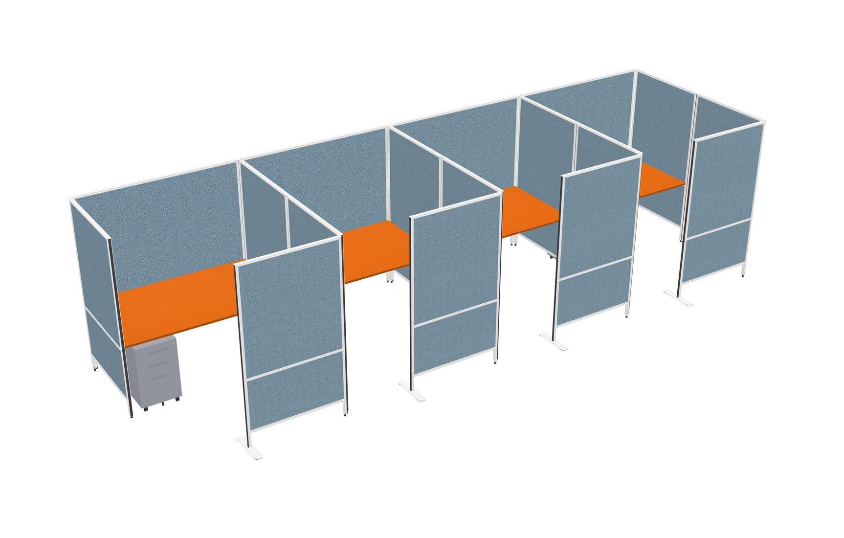 Orange Flexible Panel System With Privacy For 4 + Metal Mobile Drawers