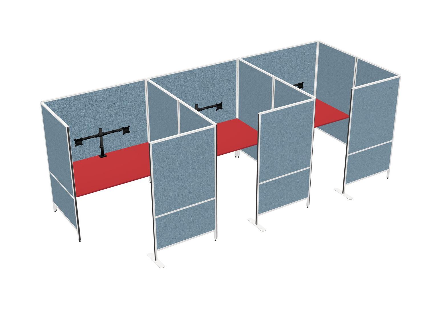 Prism Red Flexible Panel System With Privacy For 3 + Monitor Arm (double Arms)