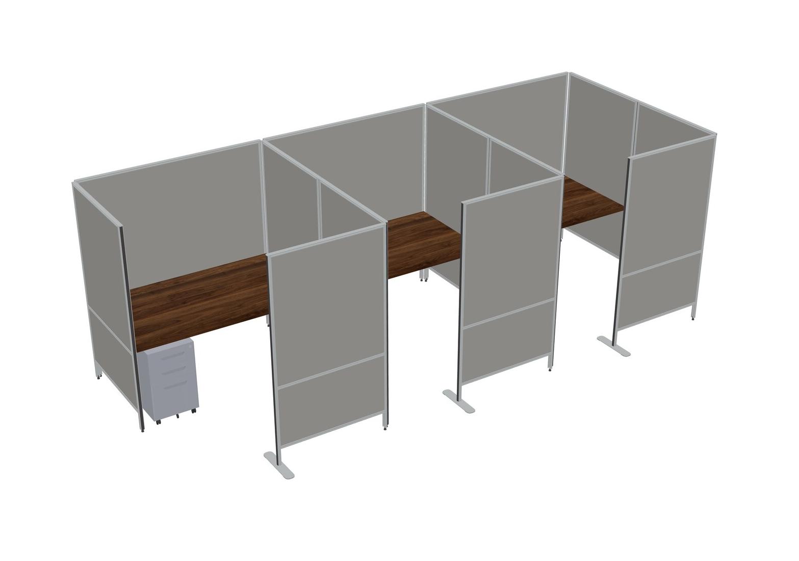 Columbia Walnut Flexible Panel System With Privacy For 3 + Metal Mobile Drawers