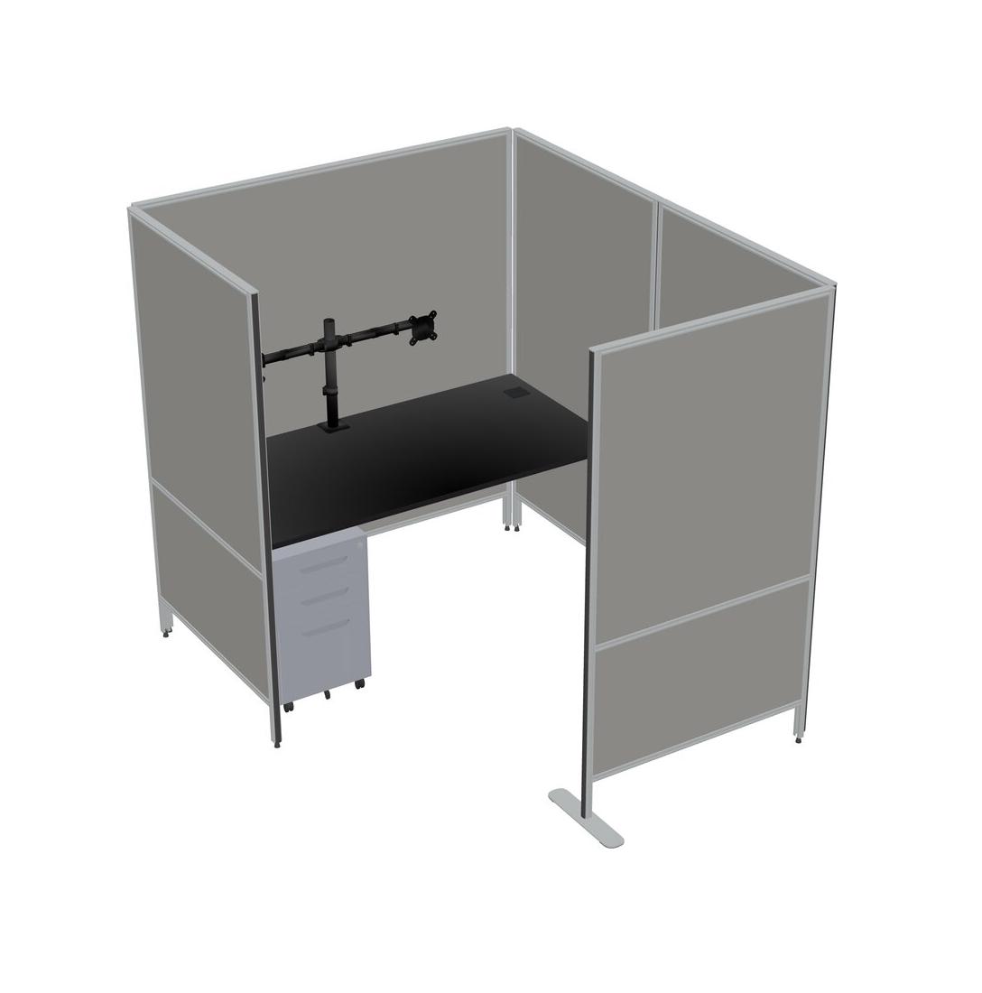 Black Flexible Panel System With Privacy For 1 + Metal Mobile Drawers + Monitor Arm (double Arms)