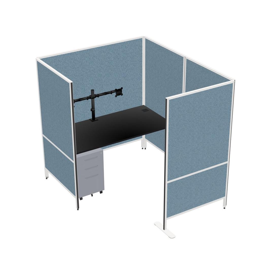 Black Flexible Panel System With Privacy For 1 + Metal Mobile Drawers + Monitor Arm (double Arms)