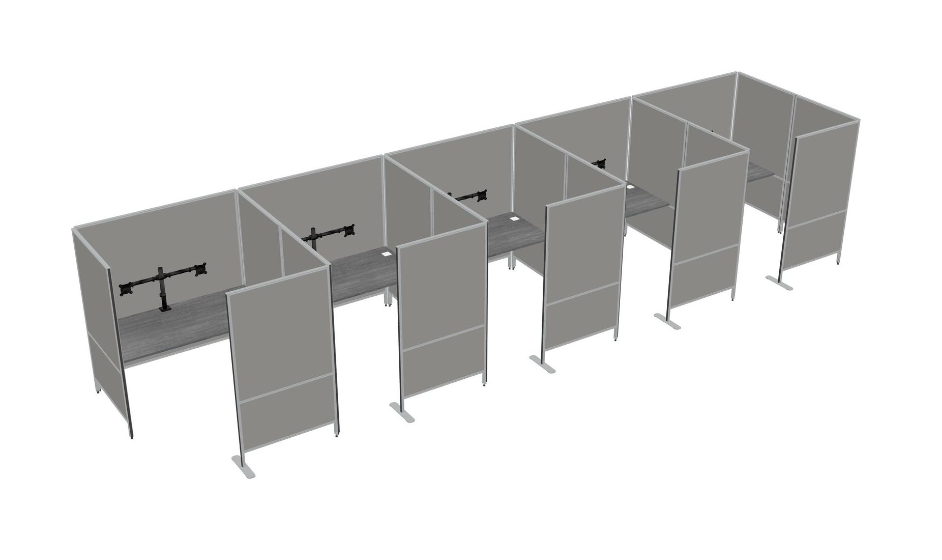 Grey Flexible Panel System With Privacy For 5 + Monitor Arm (double Arms)
