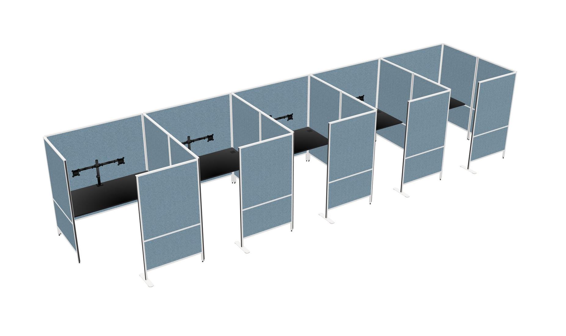 Black Flexible Panel System With Privacy For 5 + Monitor Arm (double Arms)