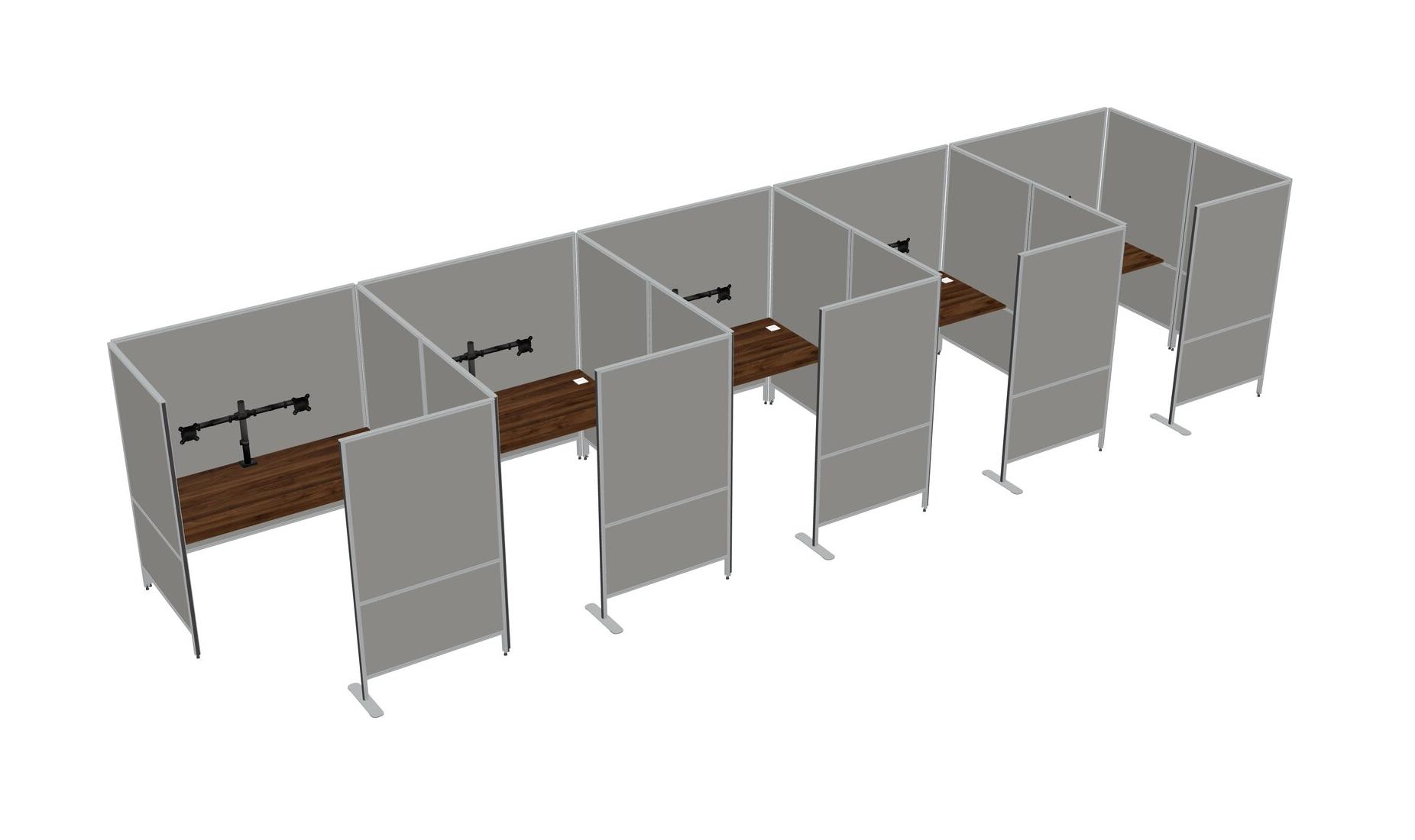 Columbia Walnut Flexible Panel System With Privacy For 5 + Monitor Arm (double Arms)