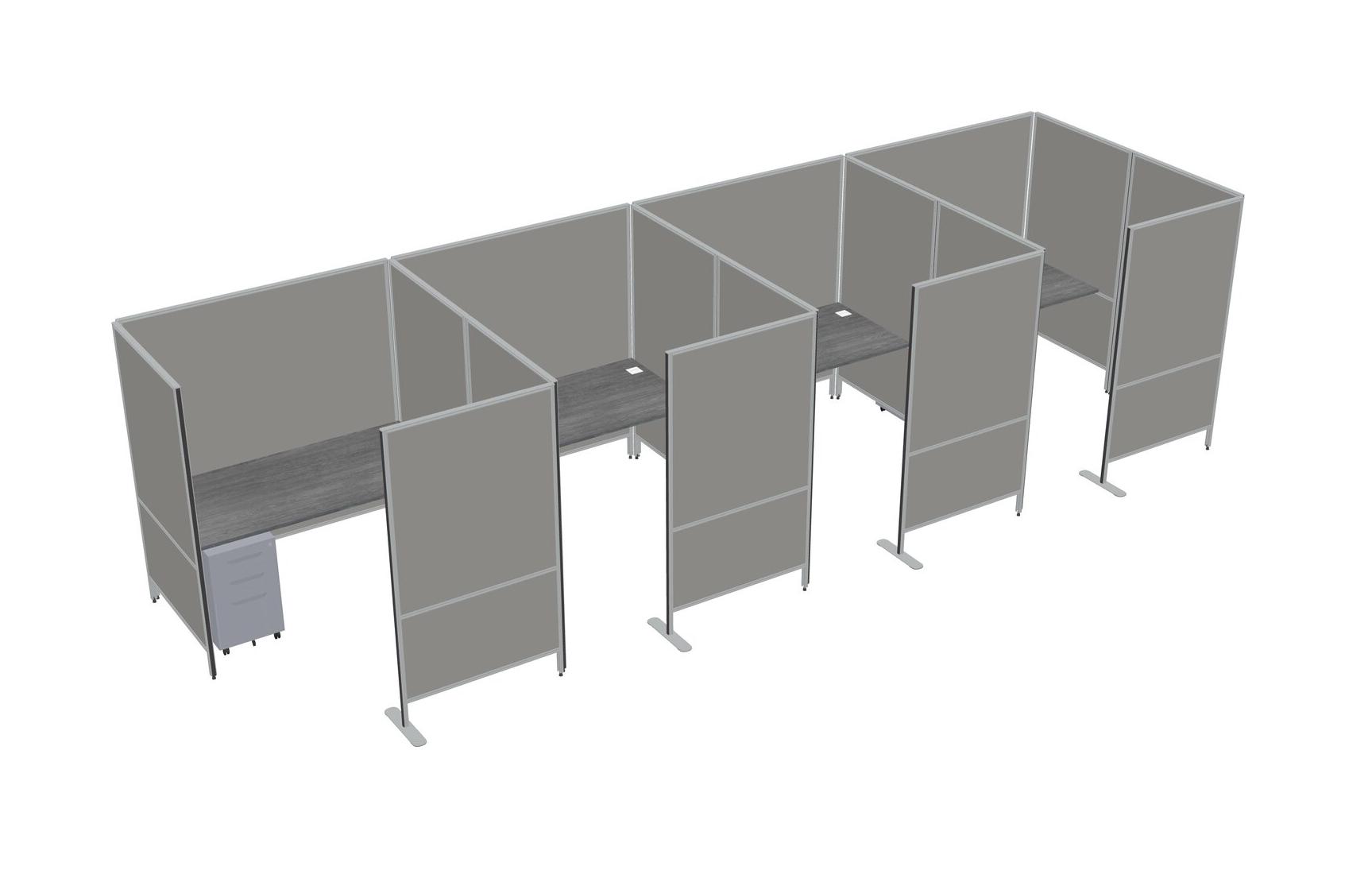 Grey Flexible Panel System With Privacy For 4 + Metal Mobile Drawers