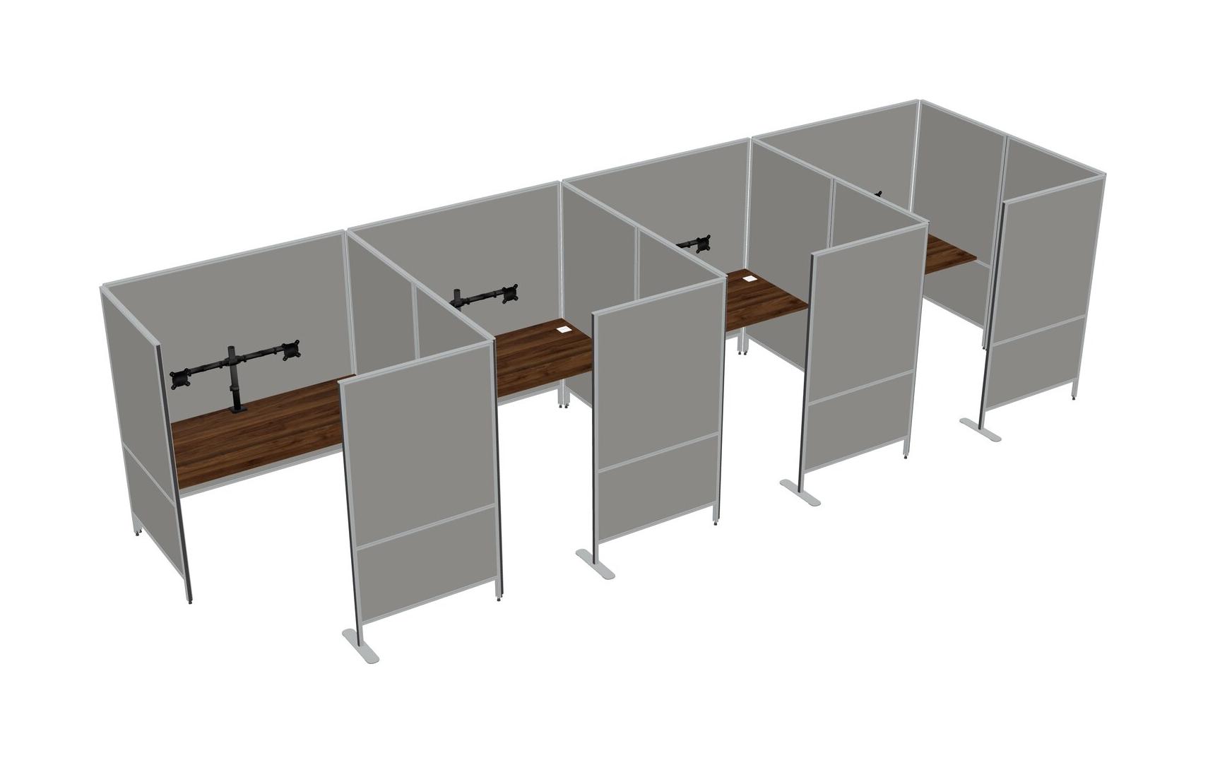Columbia Walnut Flexible Panel System With Privacy For 4 + Monitor Arm (double Arms)