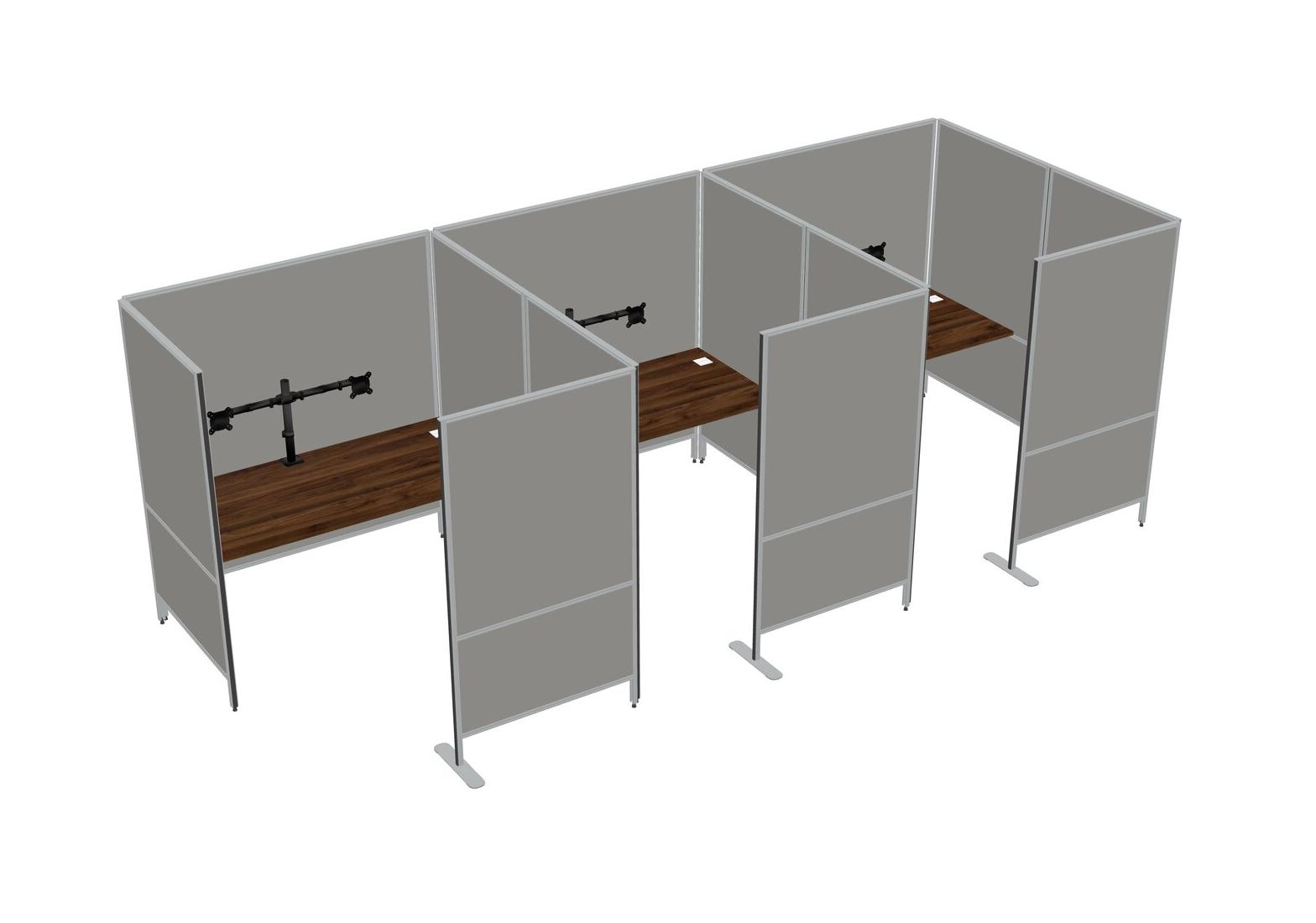 Columbia Walnut Flexible Panel System With Privacy For 3 + Monitor Arm (double Arms)