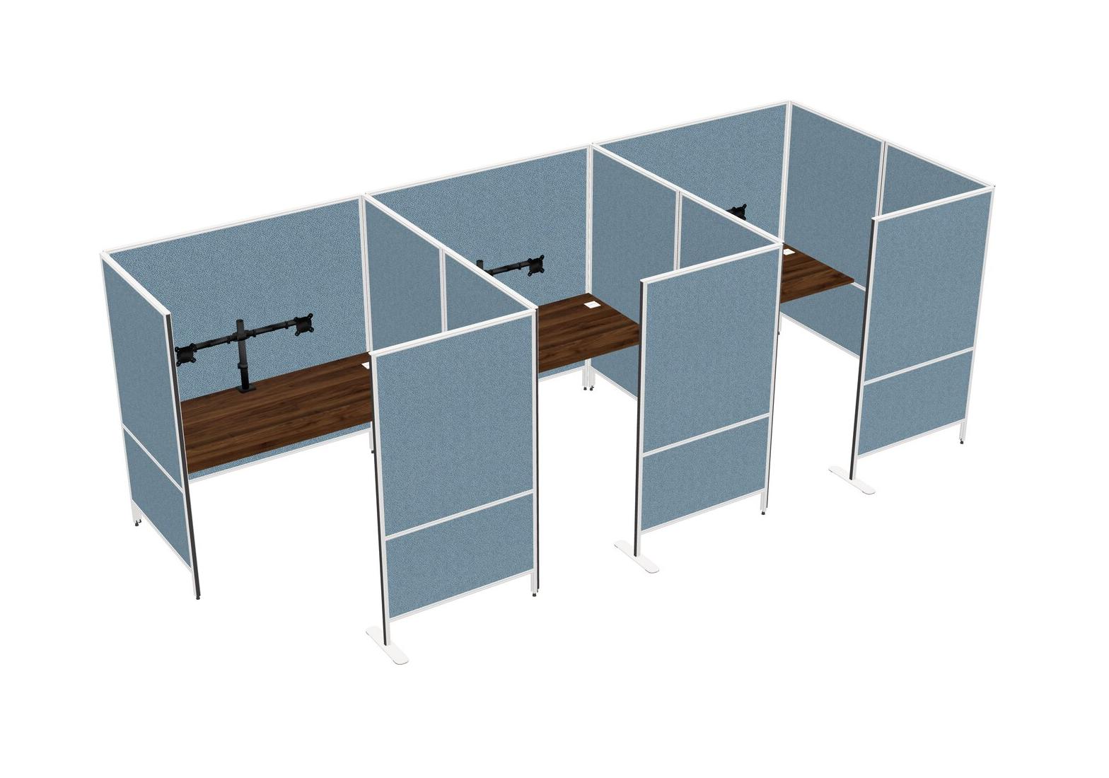 Columbia Walnut Flexible Panel System With Privacy For 3 + Monitor Arm (double Arms)