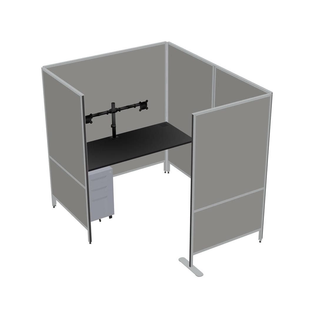Black Flexible Panel System With Privacy For 1 + Metal Mobile Drawers + Monitor Arm (double Arms)