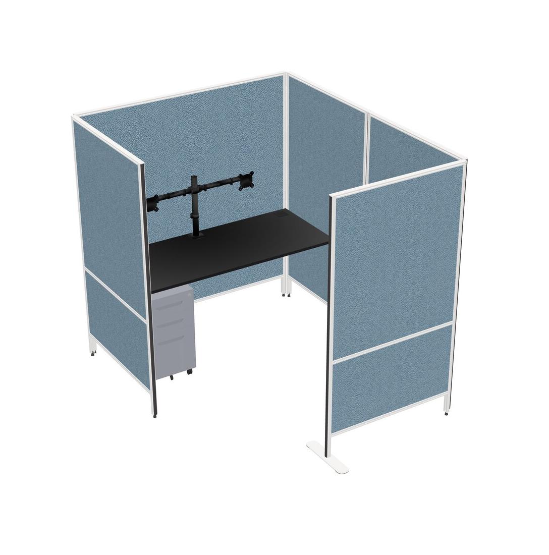 Black Flexible Panel System With Privacy For 1 + Metal Mobile Drawers + Monitor Arm (double Arms)