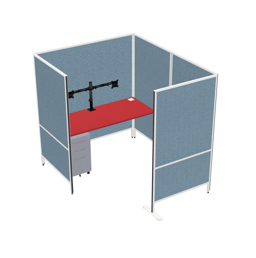 Prism Red Flexible Panel System With Privacy For 1 + Metal Mobile Drawers + Monitor Arm (double Arms)