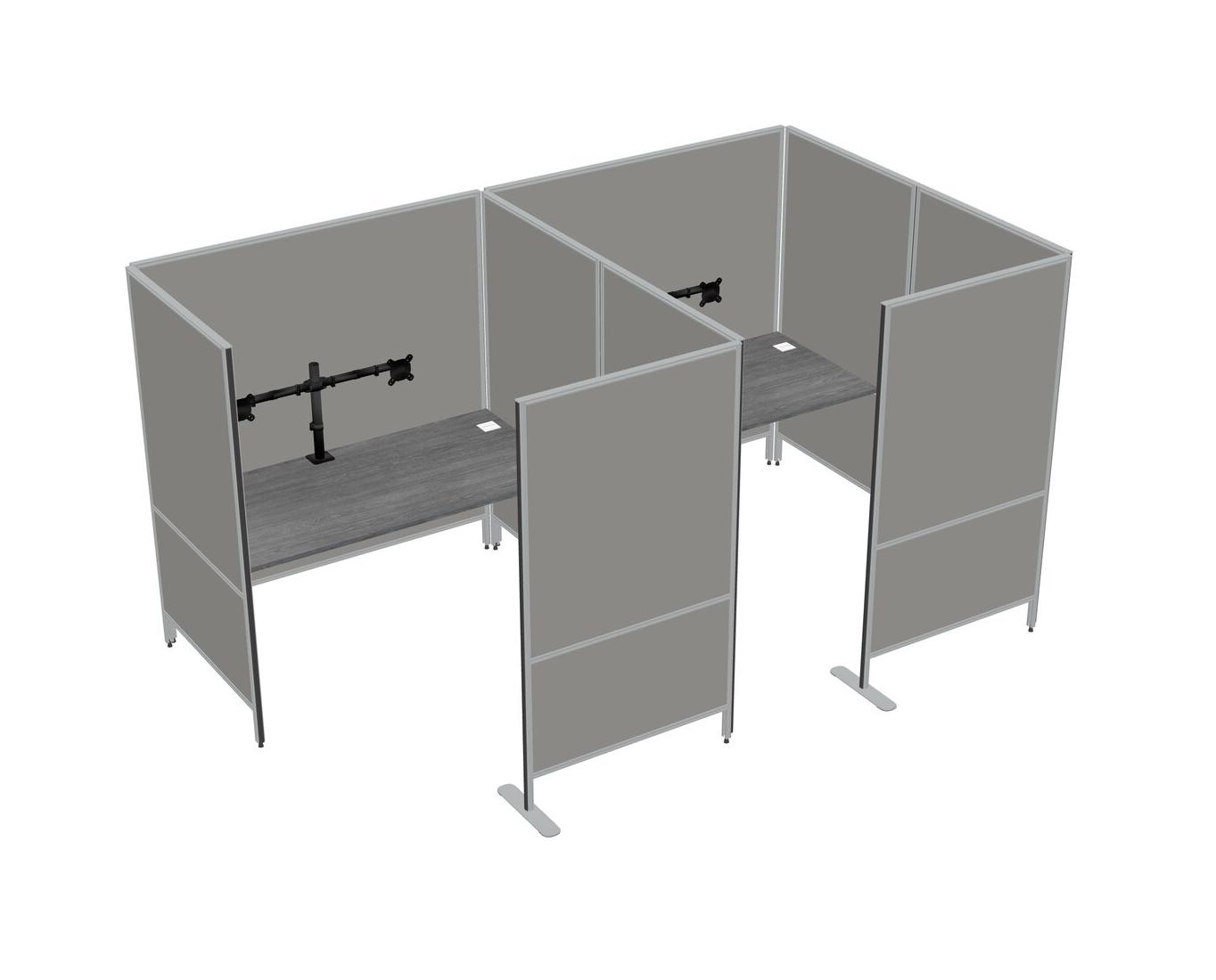 Grey Flexible Panel System With Privacy For 2 + Monitor Arm (double Arms)