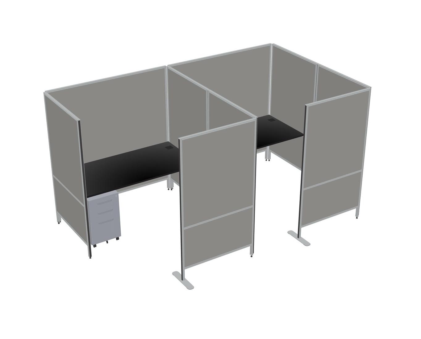 Black Flexible Panel System With Privacy For 2 + Metal Mobile Drawers