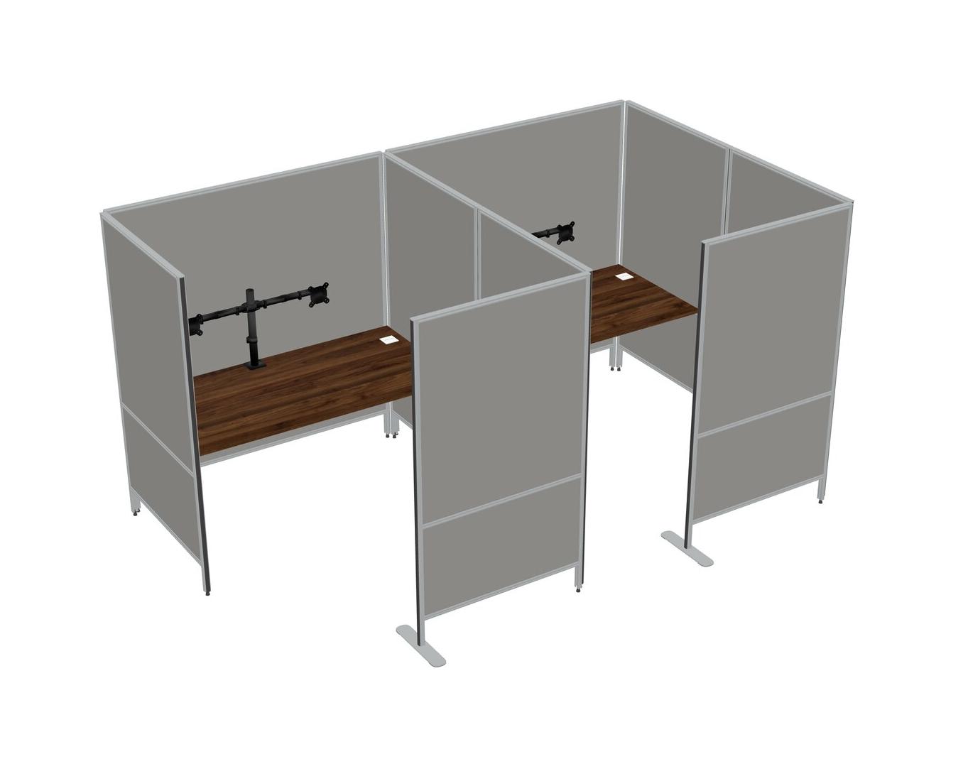 Columbia Walnut Flexible Panel System With Privacy For 2 + Monitor Arm (double Arms)