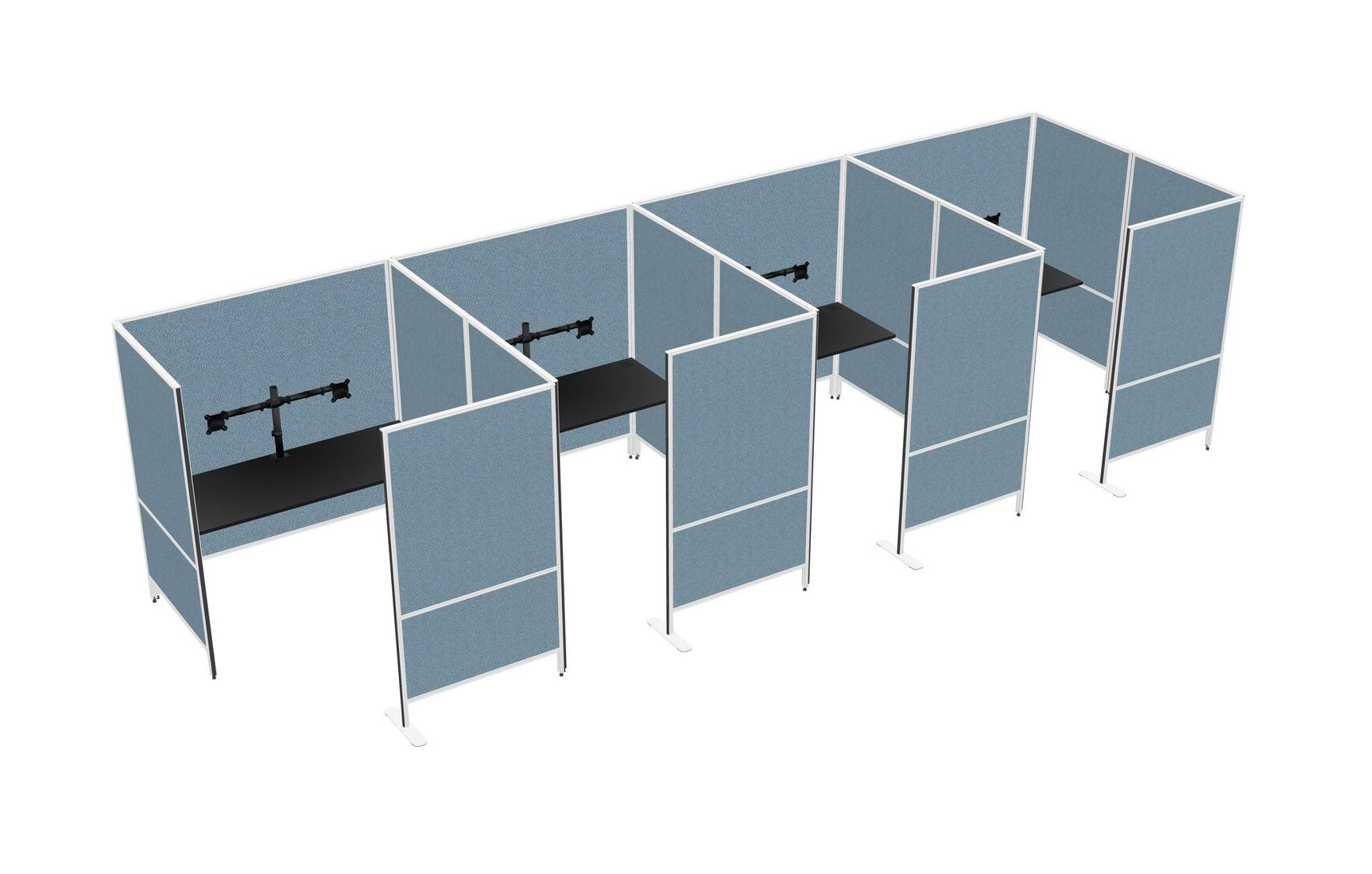 Black Flexible Panel System With Privacy For 4 + Monitor Arm (double Arms)
