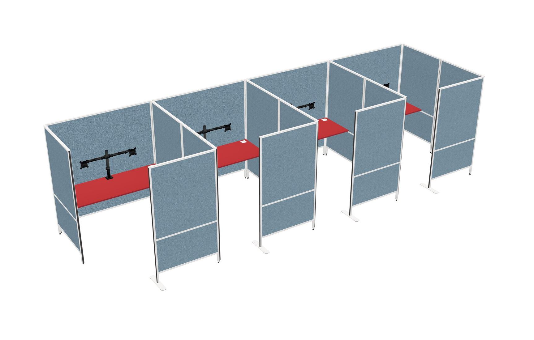 Prism Red Flexible Panel System With Privacy For 4 + Monitor Arm (double Arms)