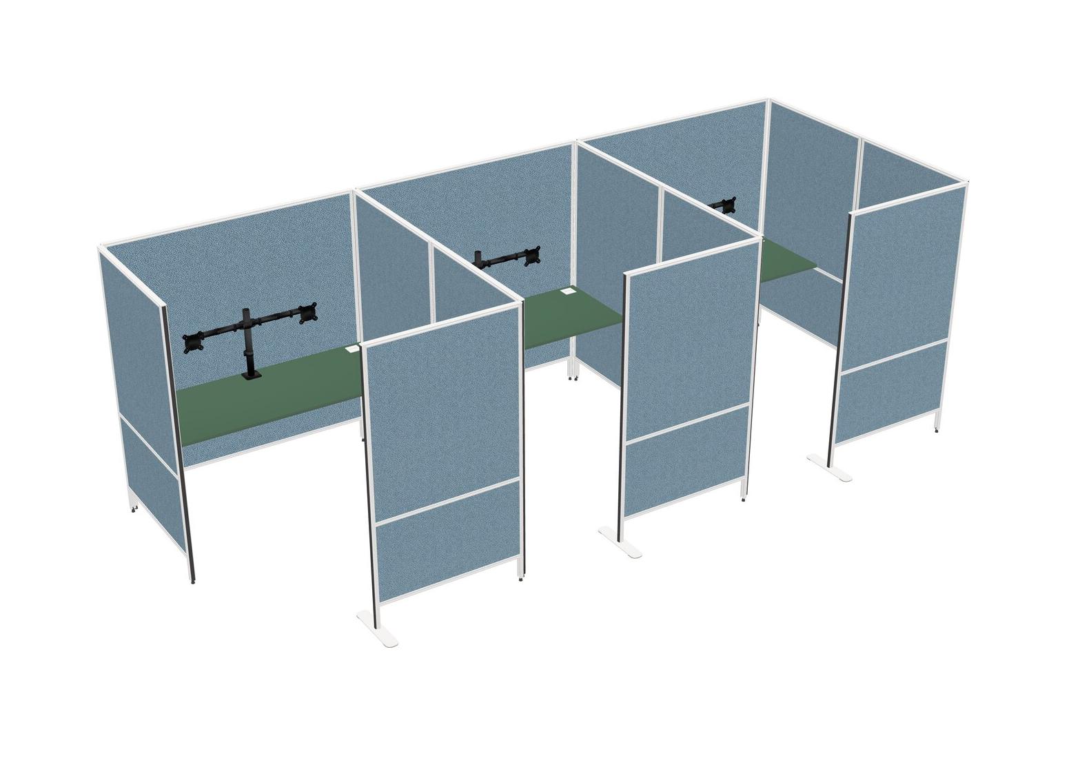 Green Flexible Panel System With Privacy For 3 + Monitor Arm (double Arms)