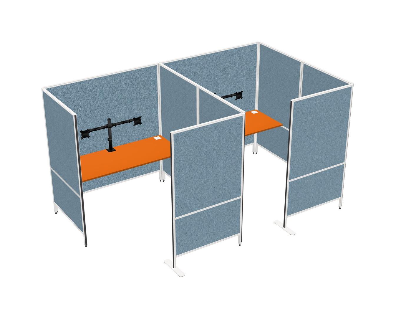 Orange Flexible Panel System With Privacy For 2 + Monitor Arm (double Arms)