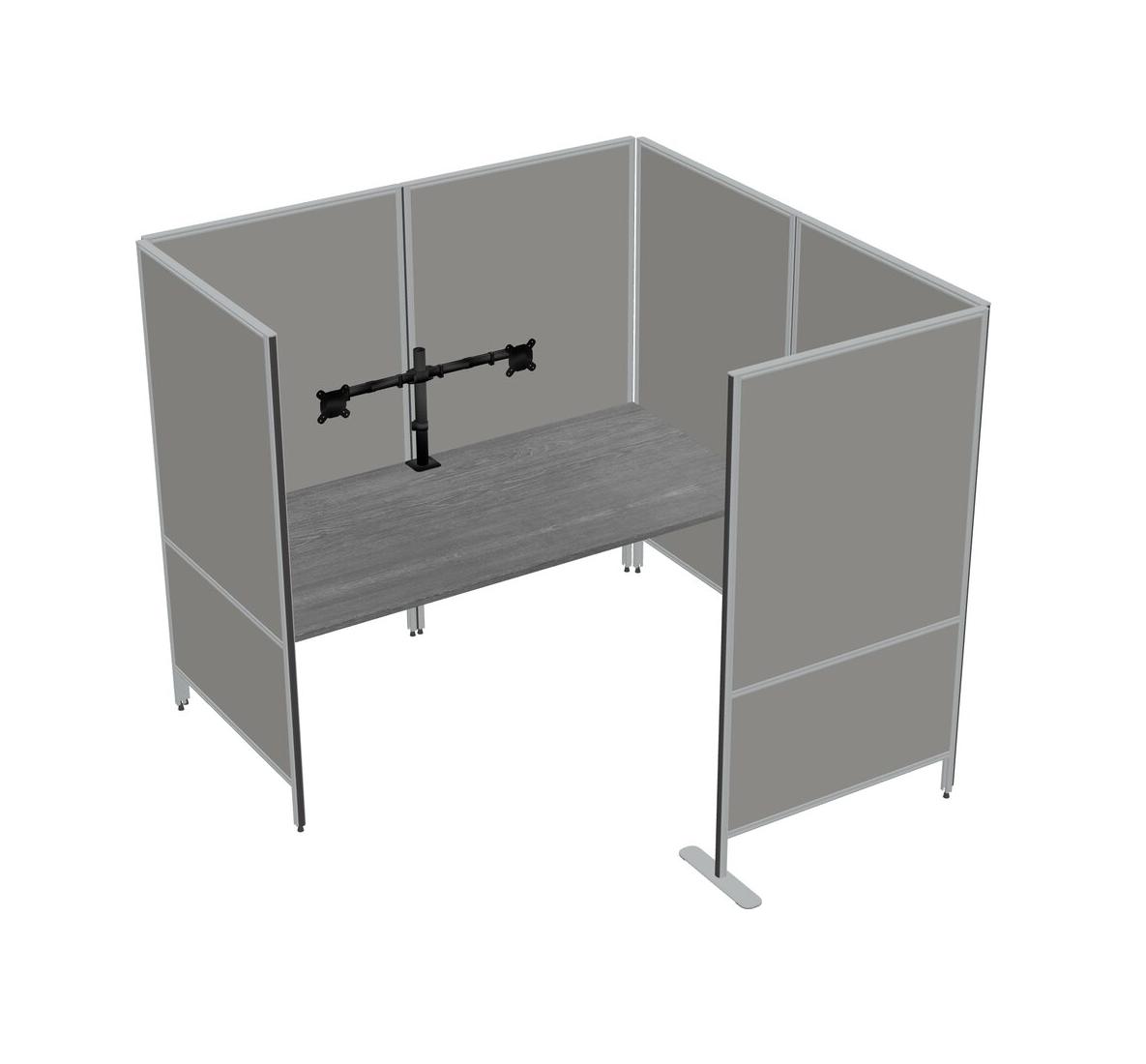 Grey Flexible Panel System With Privacy For 1 + Monitor Arm (double Arms)