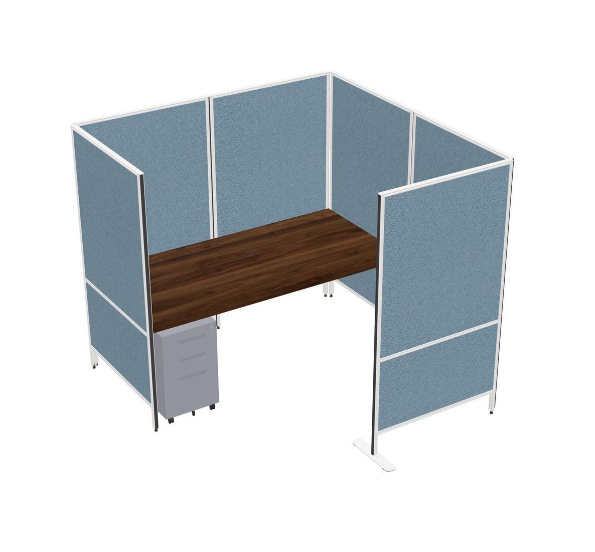 Columbia Walnut Flexible Panel System With Privacy For 1 + Metal Mobile Drawers